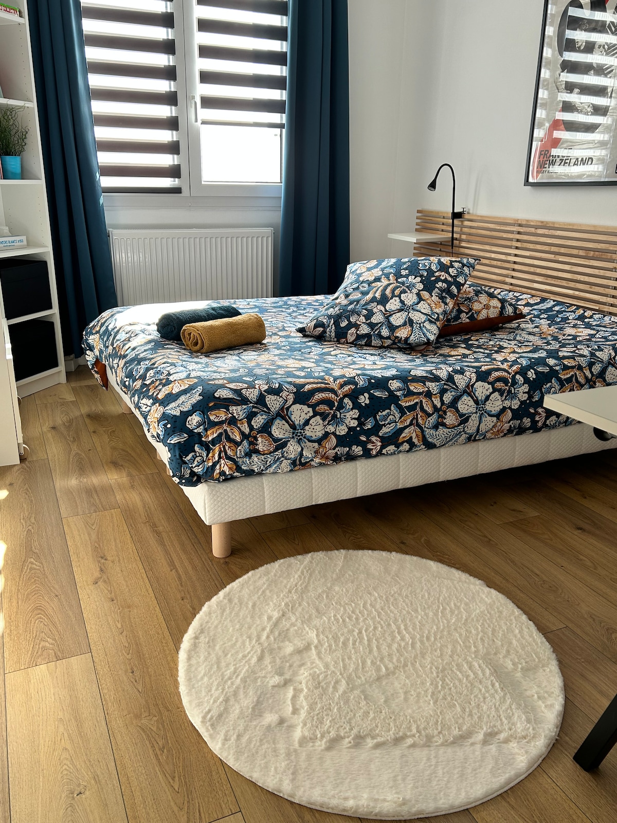 Bem-vindo ao La Perle Bleue, um apartamento de 3 quartos cuidadosamente renovado no coração de Brest! Descubra o nosso apartamento luminoso e acolhedor, ideal para 4 pessoas (até 6 com o sofá-cama). Dois quartos elegantes, uma sala de estar acolhedora com otomanos e televisão, uma cozinha equipada e uma casa de banho acolhedora esperam por si. A poucos passos do elétrico, do centro da cidade e das praias, desfrutará de uma estadia confortável e prática, perfeita para famílias, amigos ou viajantes que procuram a autêntica Brest.