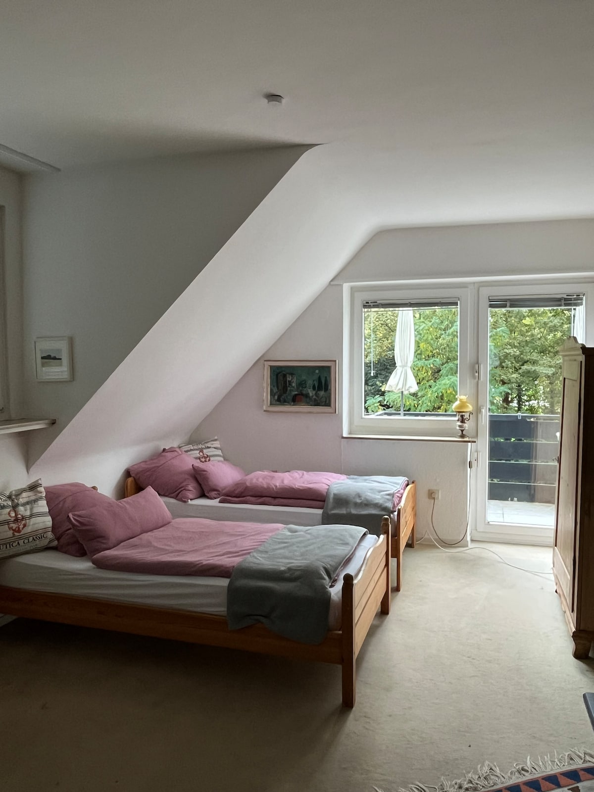 Newly renovated non-smoking room with private bath and separate access to the staircase, very centrally located within walking distance of the Hofgarten, Rhein and the Altstadt. Direct connection to Trade Fair via subway (12minutes) In order to protect our guests and ourselves as much as possible from Covid19, we will only accept bookings from vaccinated or recovered guests from 01 October. Quick tests are not sufficient.