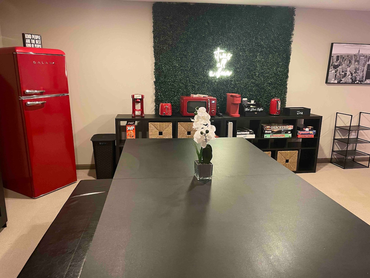 Gostamos de dar ao nosso hóspede total privacidade durante a estadia. A cave tem a sua própria entrada nas traseiras da casa. Temos degraus que vão da frente da casa até à entrada dos fundos. Aceitamos animais de estimação! Há uma taxa de $ 100 por animal de estimação. A taxa é devida à chegada. Grande quintal cercado para o nosso hóspede peludo correr e desfrutar do espaço aberto. Assim como um terraço com área de estar virada para o quintal. Por favor, certifique-se de limpar depois do seu animal de estimação após cada pausa na casa de banho. Animais de estimação permitidos apenas no quintal