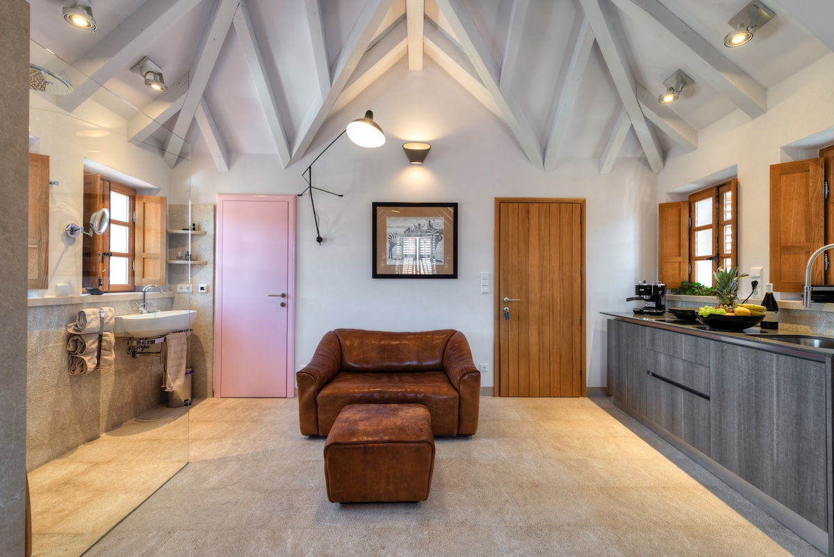 Estúdio artístico ao lado de uma praia azul-turquesa!