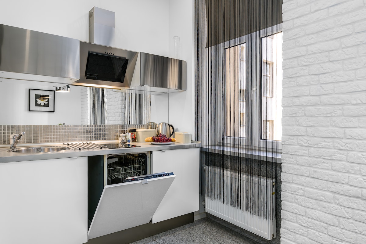 Novo estúdio com varanda e mezanino em um prédio revitalizado no centro da cidade, ao lado da Universidade de Artes. A poucos minutos da Praça do Mercado Antigo. Bom acesso de bonde da Estação Central e do aeroporto. O edifício tem um elevador. O prédio foi o cenário de um crime no romance policial de Ryszard Ćwirlej intitulado Você tem isso como em um banco.