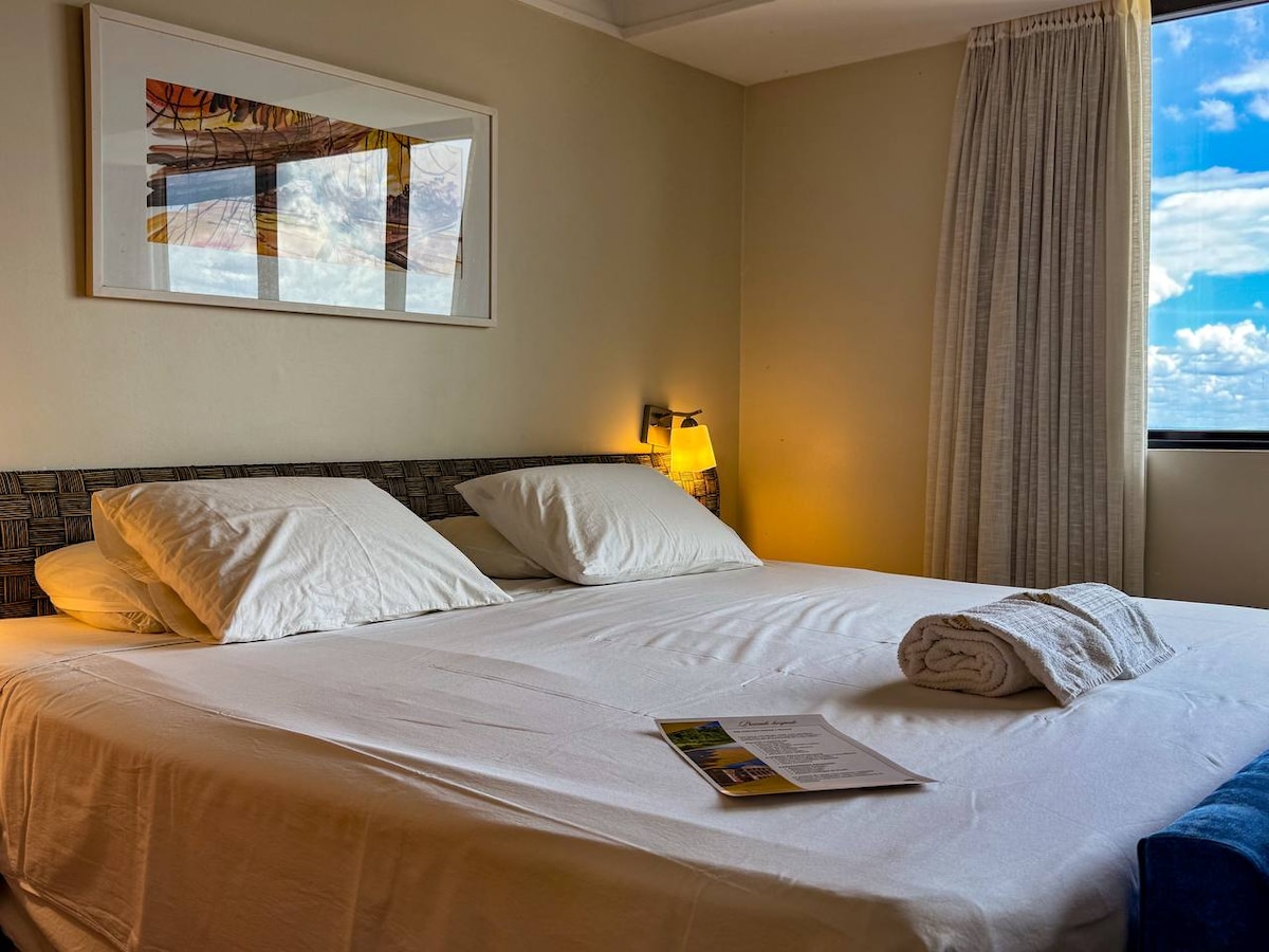 Suíte completa com vista para o rio Negro, localizada no 12º andar, equipada com Tv smart de 75 polegadas, central de ar-condicionado, geladeira, cafeteira, microondas, cama de casal e um sofá cama.O hotel conta com piscina com borda infinita com vista para o rio, sauna, academia, loja de conveniência e restaurante com áreas para refeições ao ar livre e serviço de Room Service. Não está incluso na reserva o café da manhã. Não aceitamos pet. Check-in: a partir das 14h Checkout: até as 12h