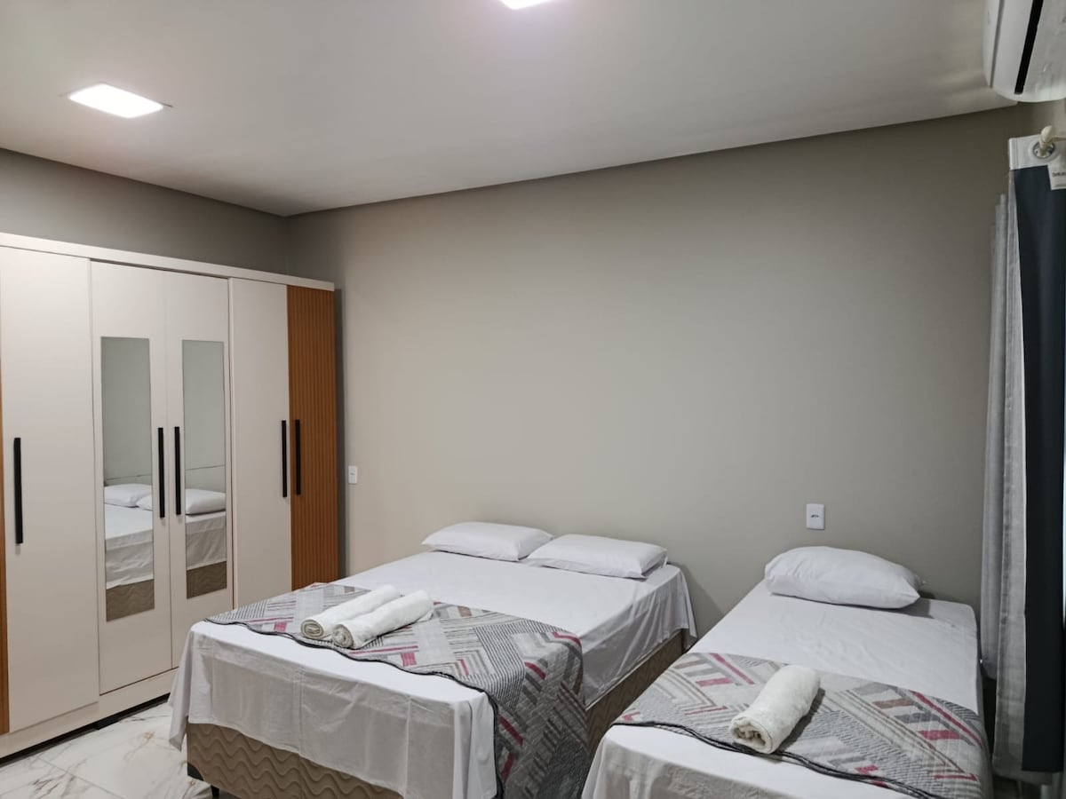 O melhor espaço da região, com localização e comodidades que tornam seu passeio inesquecível. A piscina do flat e todo o serviço oferecido serão uma atração a mais. Suíte confortável e adequado para um bom descanso. Porta de entrada para o parque Nacional dos Lençóis Maranheses, você vai se encantar. Temos um conjunto de toalhas e lençóis, mas não temos trocas. Recomendo que levem mais, pois costuma sujar muito devido aos passeios e piscina.