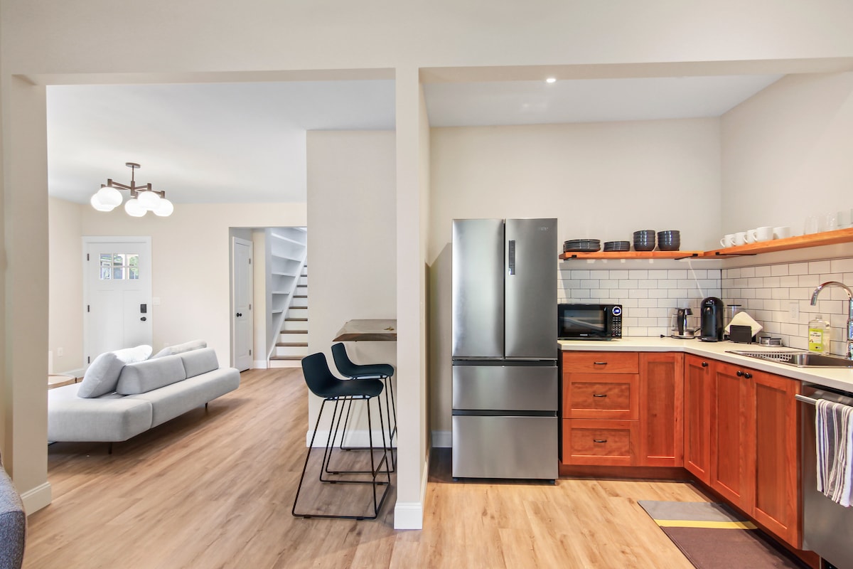 Bem-vindo ao nosso apartamento lindamente reformado no andar de baixo, onde o conforto moderno encontra o charme local. Este espaço elegante apresenta móveis de alta qualidade, obras de arte locais e iluminação personalizada. Desfrute de dois quartos espaçosos, um banheiro luxuoso com banheira de imersão e uma cozinha gourmet com armários de cerejeira maciça. Toques ecológicos e estacionamento raro no centro da cidade aumentam a conveniência. A poucos passos do Commons, é a base perfeita. Reserve agora para uma estadia elegante e sustentável — não vemos a hora de hospedar você!