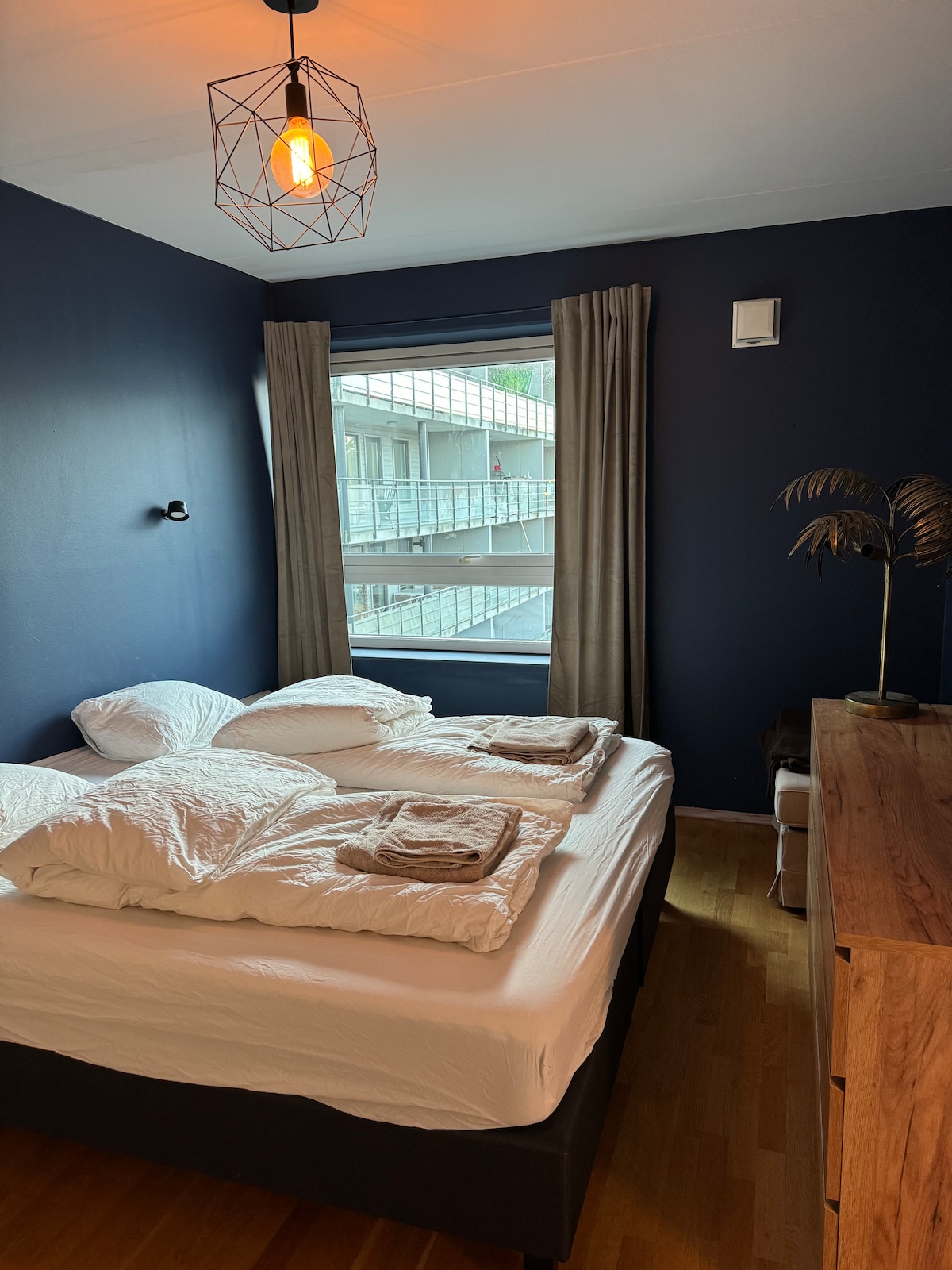 Condomínio urbano, mas tranquilo, com terraço virado para o oeste, perto do centro de Stavanger e Pedersgata, com seus bares e restaurantes. O apartamento está totalmente mobiliado. Aqui você pode caminhar até o centro da cidade em 5 minutos. O apartamento vem com uma cozinha totalmente equipada, 1 quarto, banheiro e tem um sofá-cama na sala de estar com espaço para 2 pessoas. O apartamento tem um fogão, geladeira, freezer, máquina de lavar louça, micro-ondas, cafeteira, máquina de lavar roupa, roupa de cama, toalhas, secador, TV de 50 polegadas com chromecast e Wi-Fi gratuito