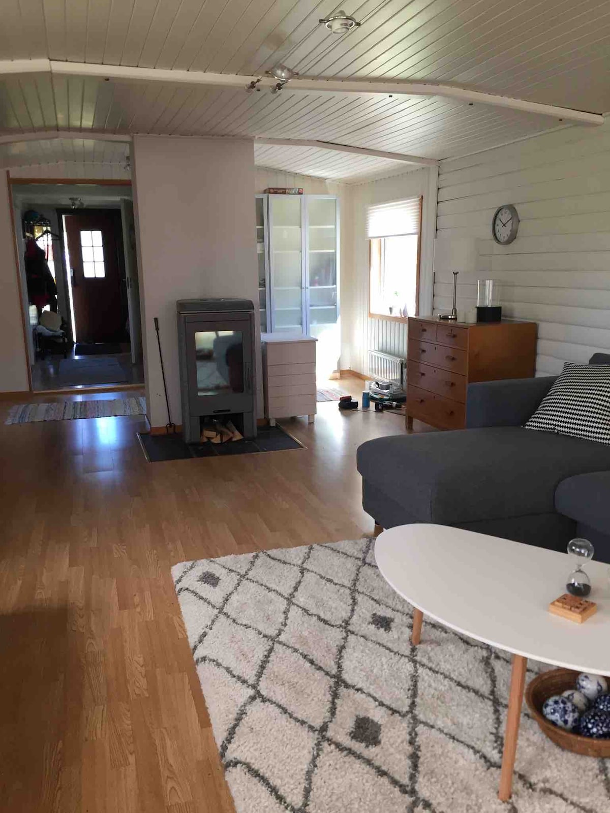 Casa de campo sueca idílica a 550 m do mar, rodeada pela natureza e última casa numa estrada de pouco trânsito. Área acolhedora, jardim privado e a uma curta distância a pé da praia e do cais. Espaço perfeito para relaxar, desfrutar de churrascos familiares ou celebrações tradicionais de verão. Perto da praia da cidade de Svanesund com sauna, festa de verão e doca para barcos; mercearias nas proximidades. Apanhe bagas e cogumelos pelo caminho. O ferry liga-o ao continente e a Gotemburgo. Willkommen/Welkom/Välkommen ao autêntico charme sueco!