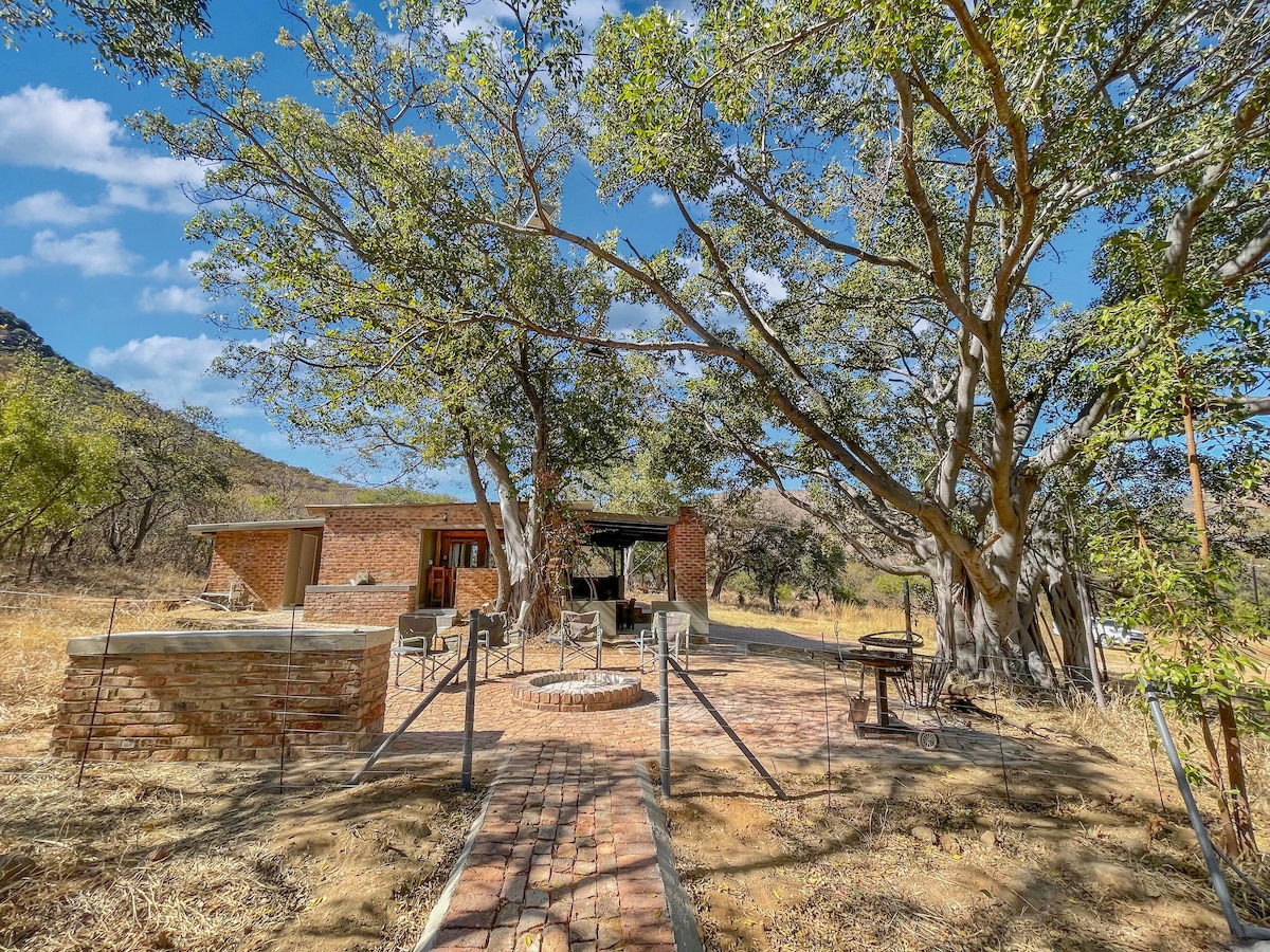 Venha desfrutar da quinta, grandes fogueiras e braais com a família e amigos nesta casa elegantemente mobilada! O nosso espaço acomoda 6 pessoas na casa principal em 2 quartos e 4 no 'Ram-camp' adjacente, ideal para crianças mais velhas. O campo de carneiro é uma ruína renovada que serviu como um lar para os mineiros de argila na década de 1970 e tem o seu próprio boma, chuveiro interior e casa de banho exterior fornecida por um burro. Jogo: Kudu, Nyala, Impala, Bushbuck e Mountain Reedbuck, para citar apenas alguns. A 15 km de Potties. Bakkie / SUV obrigatório.