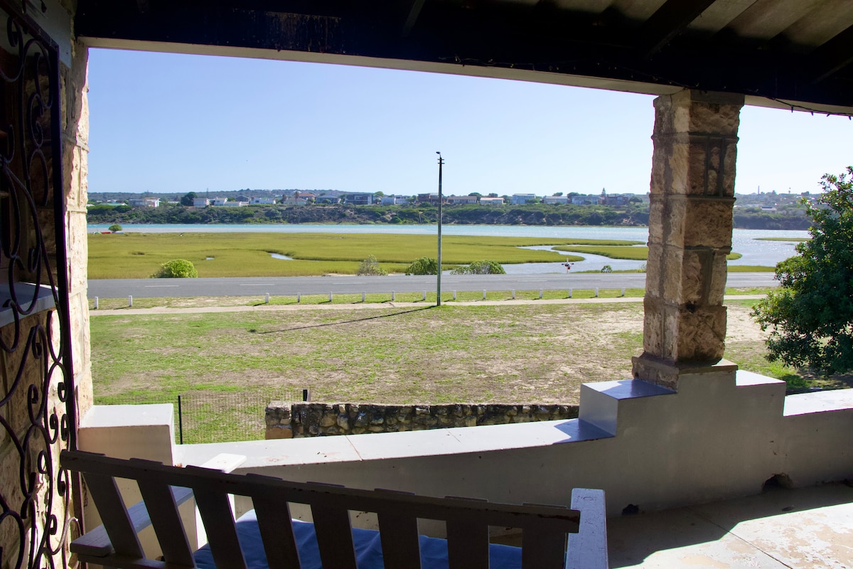 Casa de férias encantadora perto da praia no rio Goukou e no oceano – a sua fuga relaxante em Still Bay Experimente uma escapadela inesquecível na nossa acolhedora casa de férias de dois andares, localizada a uma curta caminhada do belo rio Goukou e da praia. A casa dispõe de uma espaçosa área de estar no piso superior, oferecendo belas vistas para o rio e para o mar, juntamente com um terraço confortável perfeito para relaxar ao ar livre.