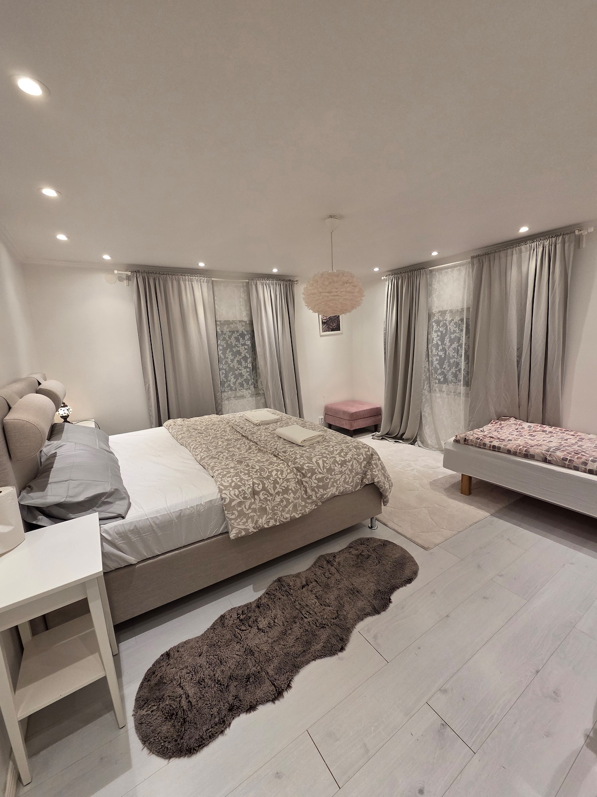 Stay in our charming Bromma villa surrounded by Scandinavian architecture and lush greenery. Our 3-bedroom home offers modern amenities, a fully equipped kitchen, and a private terrace with outdoor dining. Enjoy walking distance to cafes, restaurants, shops, parks, and lakes, with easy access to Stockholm's attractions. Our goal is to provide you with a comfortable and authentic swedish summer experience. Your home away from home.