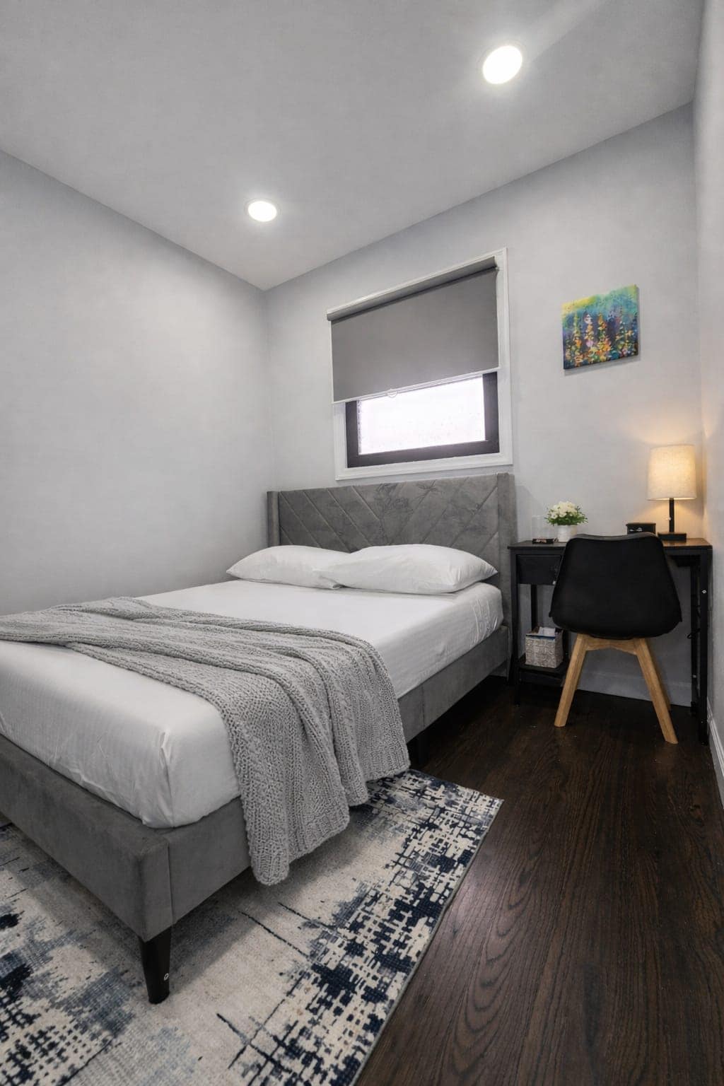 Uma suíte de hóspedes em uma townhouse moderna no Brooklyn