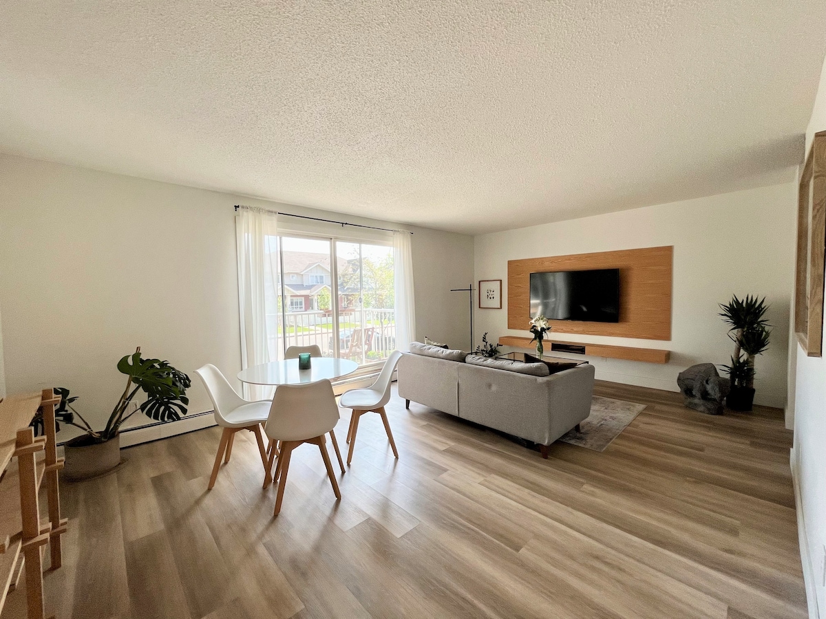 *Ar condicionado* Desfrute de toda a casa para você a um preço acessível! Acesso próximo a Yellowhead e Anthony Henday Hwy, e a 20 minutos de carro do centro da cidade e da Avenida Whyte. Relaxe em um bangalô de 2 quartos recém-reformado e mobiliado em um bairro residencial tranquilo de Homesteader. Artisticamente projetado para uma vibração calorosa e aconchegante. Um piano de som de qualidade para aqueles que são musicalmente inclinados. Paisagismo completo para uma experiência única. Com uma mesa de bar para relaxar/trabalhar.