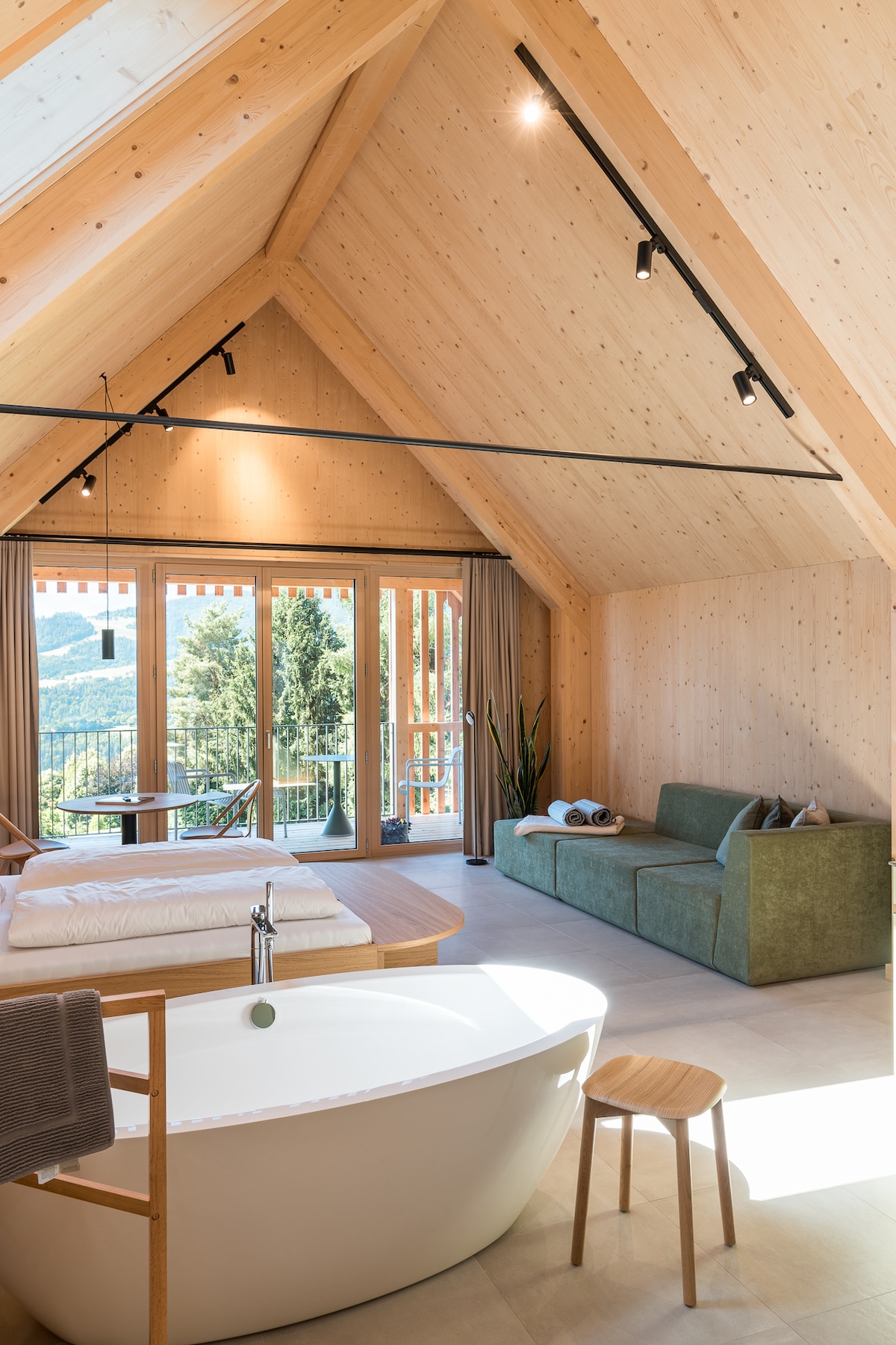 Osnossos apartamentos de cobertura na vinha High Grail oferecem um toque excecional. Aqui, a arquitetura contemporânea encontra materiais tradicionais, aninhados na pitoresca paisagem cultural da viticultura. O design aberto, as ilhas de mobiliário destacadas e as superfícies de madeira natural oferecem uma sensação única de espaço. Localizado diretamente na Schilcher Weinstraße, inúmeras tabernas e adegas de arbustos estão a uma curta distância a pé.