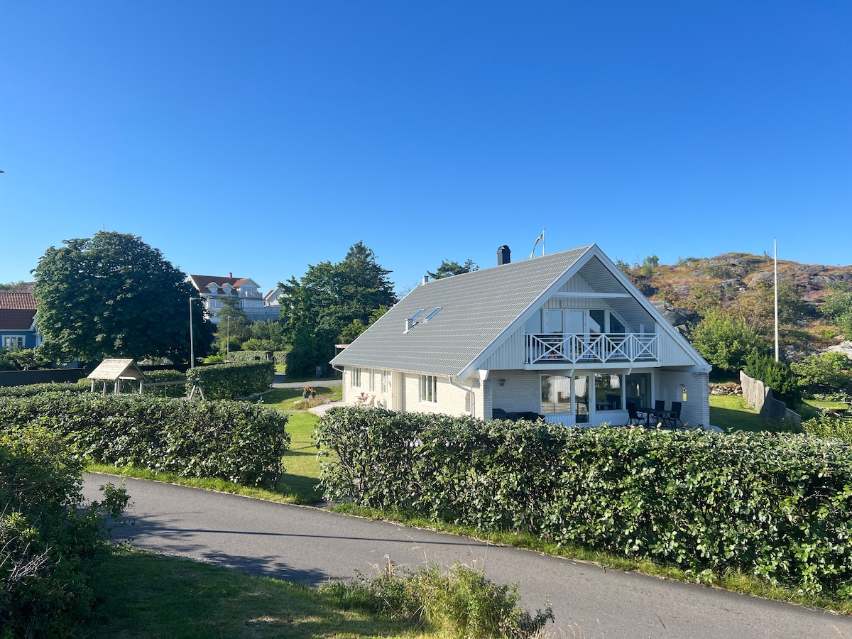 Ett stenkast från hav och salta bad. Plats för den stora familjen. Det finns badtunna på tomten och en liten lekplats för de små barnen. Gott om plats på altaner runt huset. Dessutom balkong med utsikt över hamnen och solnedgången. Det finns 3 dubbelrum, ett enkelrum och ett sovloft för två. Spjälsäng för små barn finns också. Vardagsrum, matsal och en mysig lounge på övervåningen. Utsikt över hamnen med fritidsbåtar och fiskebåtar. På Styrsö finns två matbutiker och 4 restauranger.