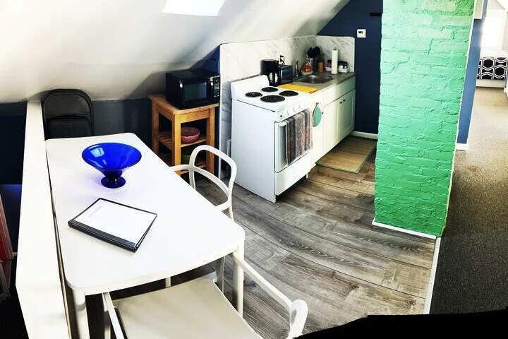 Apartamento loft de celeiro encantador e totalmente renovado com cozinha completa, incluindo fogão, forno, geladeira e máquina de lavar louça. Ótimo refúgio para até duas pessoas. O apartamento tem uma cama queen size, Wi-Fi rápido, mesa de jantar e acesso à lavanderia. Lindo banheiro com banheira completa e chuveiro. Tem todas as necessidades, incluindo cafeteira, micro-ondas, utensílios de cozinha e toalhas e lençóis limpos. Se você tiver um grupo grande, confira as outras três unidades que temos em nossa propriedade.
