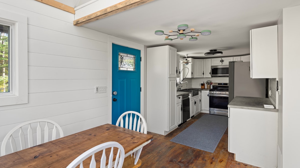 Apartamento espaçoso, cheio de luz e privado numa aldeia tranquila de Vermont. Cozinha completa, sala de jantar, sala de estar. Um quarto com cama de casal e ar condicionado; um quarto com cama de solteiro/dia, sofá futon na sala de estar. Entrada privada. NOTA: temos uma segunda unidade de um quarto na nossa casa intitulada: "Suite in the Green Mountains".