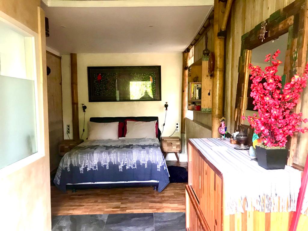 O quarto é uma cobertura privada no 2 .º andar, rodeada por um terraço no terraço com excelentes vistas e vários lugares para curtir. Tem a sua própria casa de banho com sanita, chuveiro de água quente/fria, chuveiro de efeito chuva, o quarto tem uma cama queen size, airco, ventoinha e cofre. Este lugar tranquilo, amigável e acolhedor é ideal para as pessoas que querem relaxar e encontrar espaço, conforto, privacidade e paz.