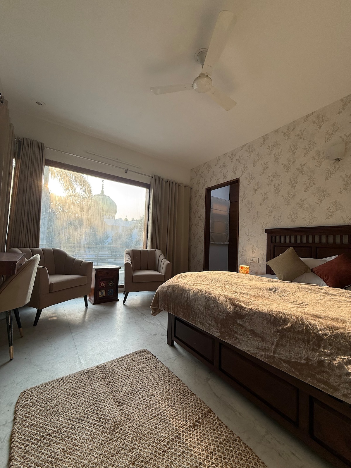Welcome to a cozy retreat atop a spacious house in the heart of Chandigarh! This private, one-room studio offers a unique rooftop experience with an attached bathroom and a kitchenette. Situated on the 2nd floor, the space is perfect for solo travelers, couples, or business guests seeking comfort and convenience. Our central location makes it easy to explore the best of Chandigarh & the rooftop setting gives the space a serene, airy vibe, perfect for unwinding after a busy day.