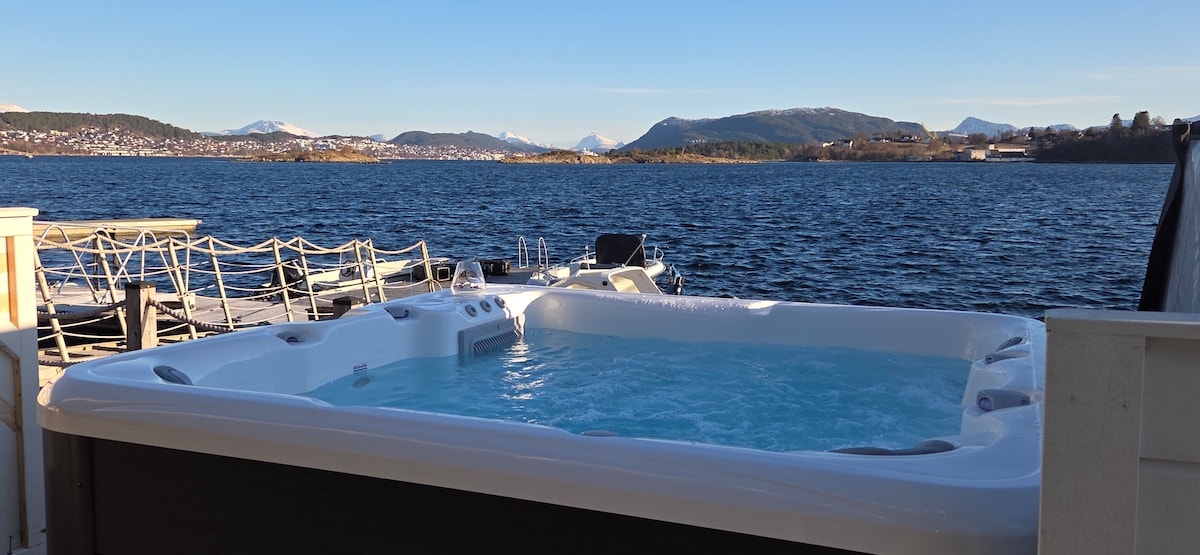 Opplev en unik hytte med maritim sjarm og utsikt ! Her kan du finne roen med en avslappende stund i vårt private spabad eller et magisk øyeblikk i badstuen. Du kan bade og fiske rett fra kaikanten eller leie motorbåt. Stedet ligger like utenfor Ålesund by som har sin unike arkitektur og vakre plassering ved kysten ! Det er kort vei til Langevåg, der du tar hurtigbåt til Ålesund sentrum på 10 min ! Det er kun 500m til nærmeste dagligvarebutikk. Flere naturstier og friluftspark i nærområdet.