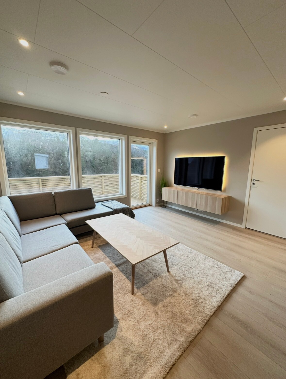 Traga toda a família para esta bela casa numa zona tranquila e adequada para crianças. A casa é nova, com mobiliário moderno e soluções práticas para os quartos. Há bons tipos de cama para 7 adultos. É possível pedir emprestado um berço ou cama de viagem para crianças. A casa fica a poucos passos do mar, onde é agradável pescar ou nadar. Há também uma curta distância para grandes caminhadas na montanha com vistas espetaculares. O centro comercial Moa fica a 7 minutos de carro. Demora 17 minutos a chegar ao centro da cidade de Ålesund.