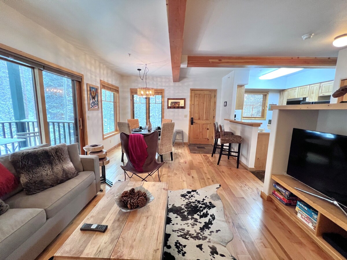 Cozy end-unit retreat in the heart of ski country. Vaulted ceilings, beautiful floors, and a gas fireplace welcome you after a day on the slopes. Keystone, Arapahoe Basin, Breck, Copper, and Vail are all within easy reach, making this Dillon hideaway the perfect basecamp for world-class skiing. Enjoy a private deck, heated garage with gear locker, stocked kitchen, comfy beds, and walkable access to dining, trails, and the lake.
