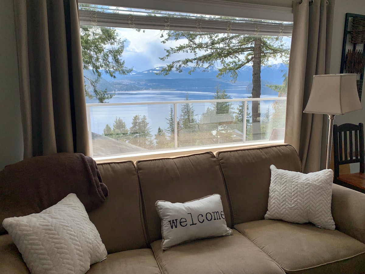 Coach House com vistas incríveis e pôr do sol com vista para o Lago Shuswap! Venha ficar no paraíso. Semanalmente, as tarifas reduzidas de primavera estão disponíveis agora. Máximo de 4 pessoas! Wi-Fi de FIBRA ÓTICA ILIMITADO gratuito e Netflix. Os proprietários estão no local na residência principal ao lado para ajudar com qualquer dúvida sobre restaurantes de praia, etc. A suite de 850 pés quadrados e 410 pés quadrados.
