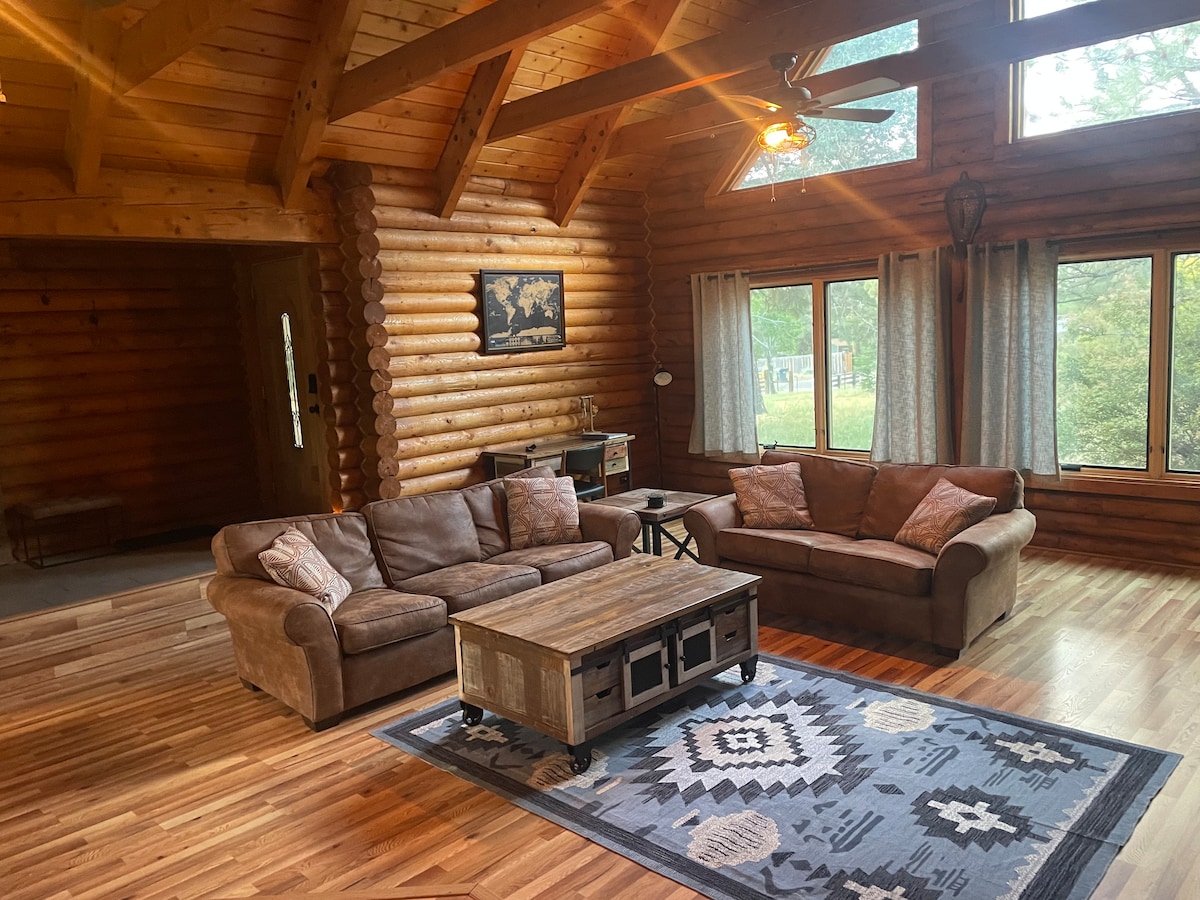 Cabana alegre com pátio de pedra/lareira/banheira de hidromassagem!