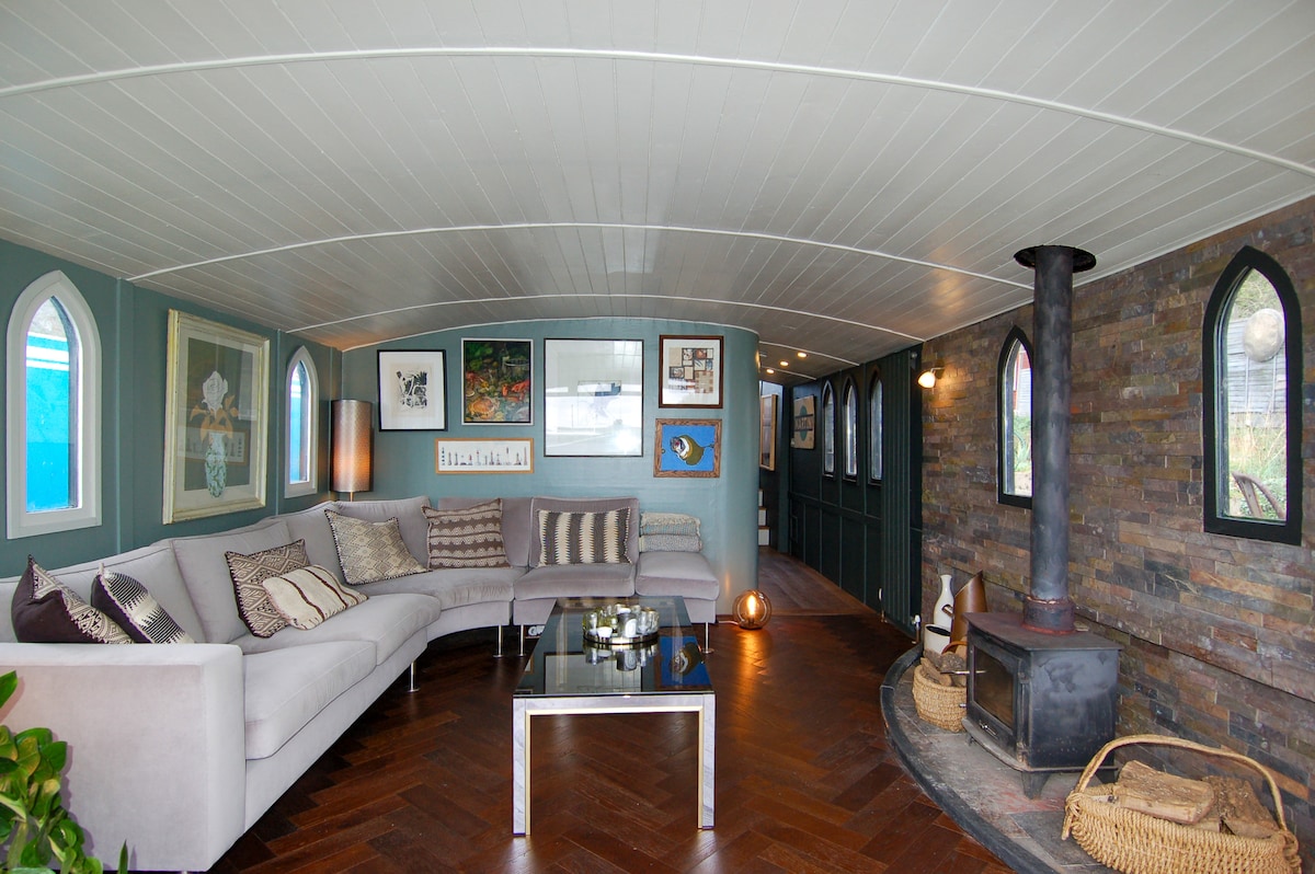 Acorde na água nesta barcaça holandesa maravilhosamente restaurada, perfeitamente posicionada na ilha de Ash, oferecendo vistas de 360 graus para o rio e uma escapadela elegante e acolhedora. Desfrute de pisos de madeira em toda a casa, uma cozinha panorâmica luminosa com vista para o Tamisa, um quarto duplo confortável e acolhedor e um espaçoso salão que se abre diretamente para o seu terraço privado - ideal para cafés matinais lentos, almoços ao sol ou cocktails ao pôr do sol. A poucos minutos do Palácio de Hampton Court e a 25 minutos do centro de Londres.