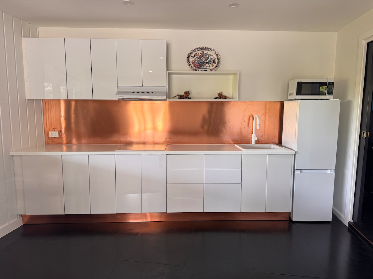 Uma paisagem rural tranquila, sons de rãs e pássaros, enquanto se está deitado numa banheira luxuosa num retiro elegante e espaçoso, cama queen superconfortável. A 2,5 km da praia de Whites. Nota: o estúdio está ligado à nossa casa, poderá ouvir o barulho geral da cozinha/tv, mas tem uma entrada privada e um deck isolado a leste. Comodidades de cozinha: grelhador, além de uma kitchenette com micro-ondas, air fryer, panela de arroz, chaleira e torradeira. Admite cães. POR FAVOR: dê banho ao cão antes da chegada e traga uma toalha para as patas com lama/areia.