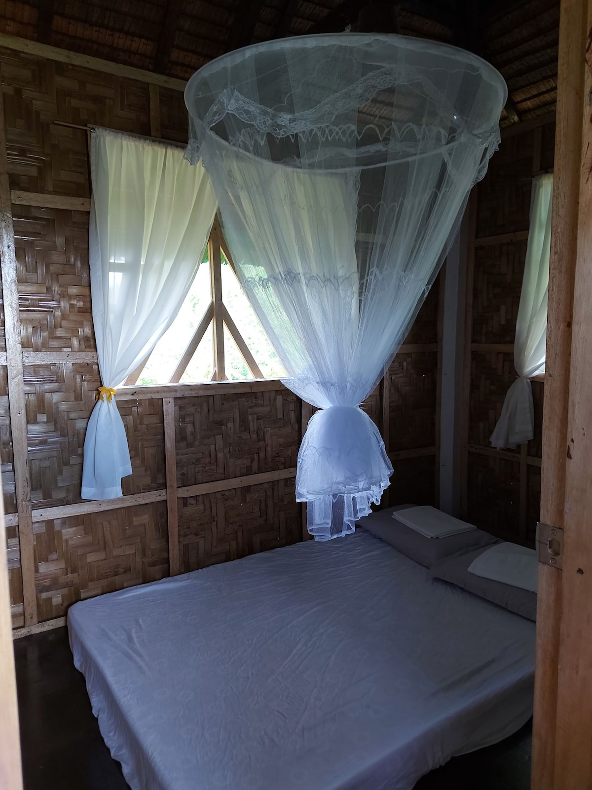 Oferecemos uma experiência gastronómica descontraída e única, tudo rodeado por natureza intocada. Oferecemos um alojamento Nipa Hut, restaurante, fogueira, banho quente kawa, aluguer de tendas, balanço de cama e decks de vista onde pode relaxar, refletir e reconectar-se com a natureza. Todo o espaço é alimentado apenas por energia solar e, por vezes, ficamos sem energia, mas damos luzes de emergência à noite aos nossos hóspedes com check-in.