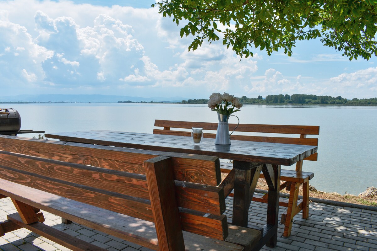 Microcasa no Danúbio com vista para o rio e terraço aquático