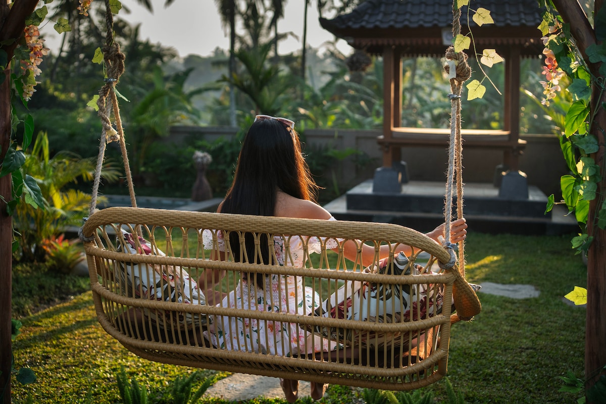 Precisa de reclusão, tranquilidade e vistas deslumbrantes? Esta encantadora vila privada de luxo com 1 quarto e piscina está situada entre belos campos de arroz em terraço. Seja em um retiro de escrita, viagem de pesquisa, nômade digital ou uma escapadinha romântica, este é o cenário perfeito para relaxar, pensar e criar! Um refúgio rural sereno a apenas 8 minutos do centro de Ubud. Bônus: oferecemos aos nossos hóspedes lavanderia, secagem e passagem de roupa gratuitas duas vezes por semana!