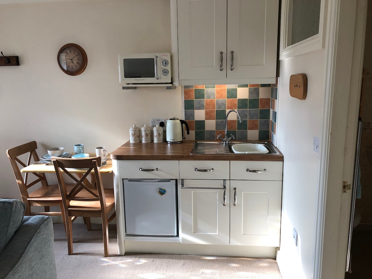O Nook é uma unidade de garagem convertida que está separada da nossa casa com entrada privada, área de estar ao ar livre e cofre de chaves para entrada. O alojamento é composto por sala de estar/kitchenette, quarto e quarto molhado. A seleção de cereais de pequeno-almoço, chá, café, açúcar e leite é fornecida para tornar a sua estadia o mais confortável possível. Um leitor de T.V/D.V.D é para seu uso, assim como um micro-ondas e uma placa de indução para cozinhar de forma leve. Assentos confortáveis e uma pequena área de refeições completam a sala principal.