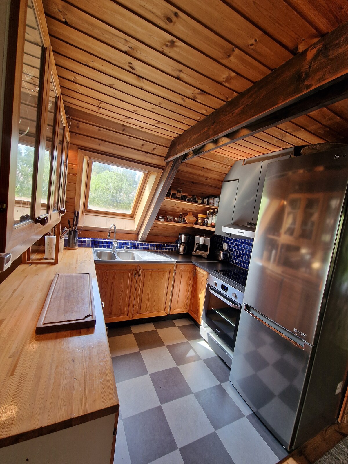 Casa de campo recém-construída de 30 m ². A 5 minutos a pé do porto. - Plano aberto com cozinha e sala de estar num só. - Loft para dormir com 2 camas individuais. - A sala de estar tem um sofá-cama. - A cozinha tem uma placa de indução e um forno. - Casa de banho com azulejos, sanita, chuveiro e máquina de lavar roupa. - Grande terraço à volta da casa com área de refeições. - A vista é composta por floresta de pinheiros e mirtilos. - A limpeza não está incluída. Não são permitidos animais de estimação - Não são permitidos animais de - Os hóspedes trazem a sua própria roupa de cama e toalhas (podem ser alugadas por 150 kr por pessoa)