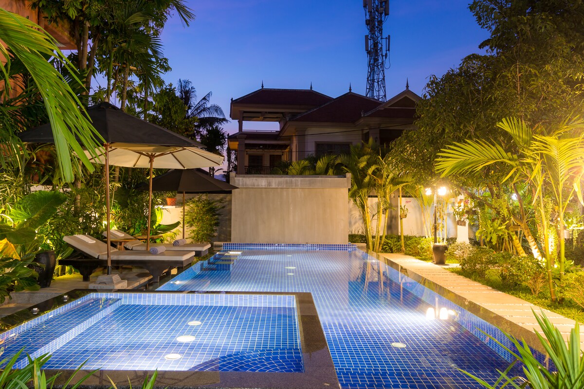 Uma espaçosa casa boutique de 5 quartos com piscina privativa, construída em um estilo único de arquitetura Khmer e ocidental com um ambiente de oásis, localizada perto do maior mercado local de Siem Reap, a apenas 10 minutos da Pub Street do centro da cidade e a 15 minutos do maravilhoso Angkor Wat. Esta bela vila é ideal para um grupo ou uma família desfrutar de uma estadia privada e sentir-se como se estivesse em casa. Refeições Khmer autênticas, transporte/passeios guiados e traslados do aeroporto podem ser organizados durante a estadia.