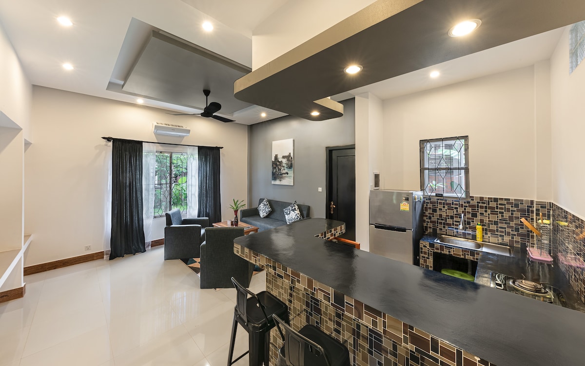 Relaxe com toda a família neste apartamento seguro, tranquilo e central com comodidades incríveis: piscina, academia, deck de ioga, estacionamento e vegetação. Tudo o que você precisa a uma curta distância a pé: lojas convenientes, cafés, restaurantes, bares, spas e massagens. Caminhe em direção à Pub Street (a menos de 10 minutos da Pub Street), e você terá todas as coisas turísticas. Caminhe em outras direções e você acessará tudo local. 3 bicicletas no local para uso gratuito. A Internet é rápida e estável.