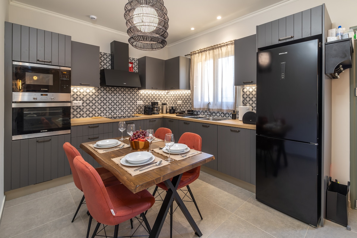 Uma casa recém-construída abre suas portas este ano, pela primeira vez para receber até mesmo os hóspedes mais exigentes. A privacidade oferecida pela vila, juntamente com a arquitetura que combina o moderno com a decoração minimalista, em combinação com os espaços confortáveis e a fachada impressionante com vista para o azul infinito do Mar Jônico, tornam-na um lugar acolhedor e encantador! Aproveite sua estadia neste espaço relaxante e elegante!