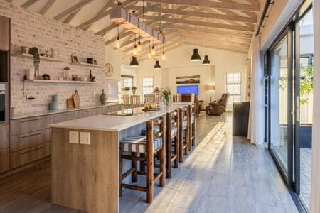 Esta casa de estilo contemporâneo auto-suficiente é elevada por vistas deslumbrantes para o mar. A textura em camadas da decoração inspirada no mar e a área de entretenimento em plano aberto são perfeitas para qualquer escapadela. Esta casa dispõe de 4 quartos, 3,5 casas de banho, um salão, área de refeições, cozinha completa e comodidades para churrascos interiores e exteriores.