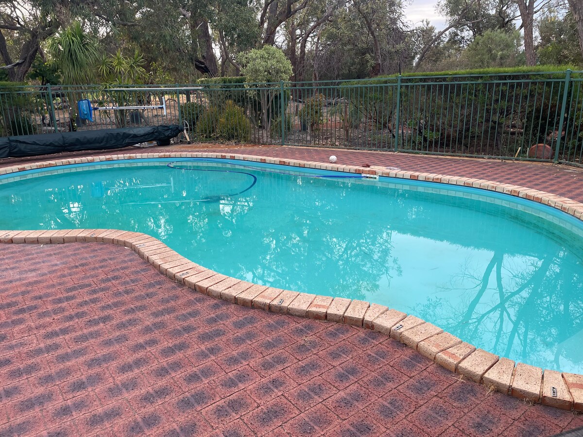 Aninhado nas árvores do subúrbio frondoso de The Vines, Swan Valley. Campo de golfe com cangurus saltitantes. Pousada com ovos frescos. Tacos de golfe, bicicletas, raquetes de tênis. Churrasqueira. Luxuosa casa aconchegante, cama queen size, sofá-cama king size. Veículo próprio preferível, pode oferecer corrida para o aeroporto. Roupa de cama de pelúcia, produtos de higiene pessoal e cozinha. Desfrute de um refúgio romântico de no mínimo 2 noites ou mais. Perto de resort com golfe, tênis, squash, academia e restaurantes. Xerez incluso. Inglês, africâner, flamengo, holandês