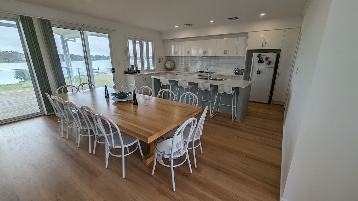 Deixe-se levar pelo poderoso rio Murray e perca-se flutuando entre os salgueiros, a vida selvagem e a magia do rio. Aproveite a paisagem única deste lugar romântico em meio à natureza — adormeça ou deixe sua criatividade fluir para novos reinos. O deck de 360 graus e os móveis móveis oferecem opções para você desfrutar, seja qual for a estação. Abra as cortinas e portas para deixar a brisa do rio fluir enquanto observa o rio passar. Feche as cortinas para se retirar para o seu próprio pequeno pedaço de reclusão.