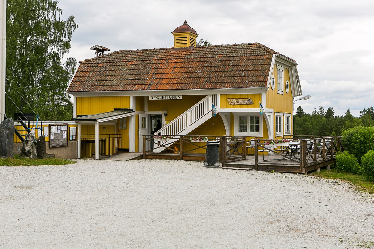 A cabana é uma das três cabanas, localizadas em uma fazenda idílica a apenas uma hora do coração de Estocolmo. Rosenhill é uma fazenda familiar tradicional que usa métodos orgânicos para produzir legumes, maçãs e suco de maçã. A atmosfera descontraída torna este um ótimo lugar para relaxar e desfrutar do campo sueco. Temos um café onde você pode encontrar boa comida caseira e guloseimas baseadas em nossos próprios recursos e durante a alta temporada muitos eventos agradáveis de comida e música são organizados.