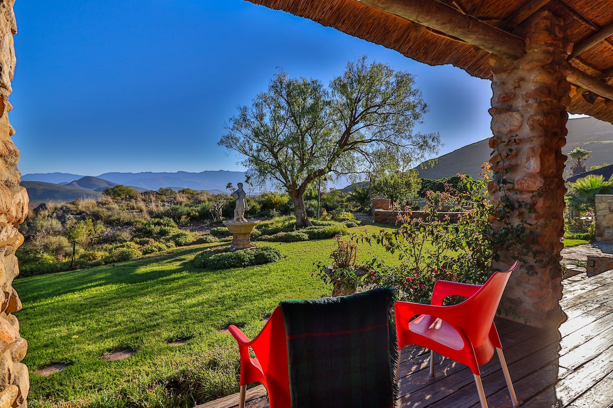 A self catering apartment in a quiet area with views of the beautiful mountains of Montagu. One bedroom is equipped with a queen size bed and the other room with two single beds. There is a well equipped kitchen should you want to prepare your own food but we have a variety of local restaurants. Come and enjoy nature.