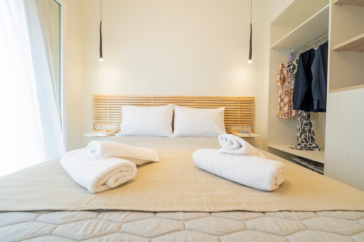 Um belo apartamento urbano chique no 2º andar (sem elevador), recentemente renovado, com um grande terraço. O apartamento de Nastia fica a 15 minutos a pé do centro da cidade e do porto. Em 5 minutos, pode visitar o Museu Industrial e o Museu Têxtil de Hermoupolis. Nas proximidades, há também supermercados, farmácia, hospital, ginásio e padaria. É ideal para trabalhadores remotos, pois é espaçoso e tem todas as comodidades e o equipamento necessários para a vida quotidiana. Wi-Fi rápido e gratuito, um terraço maravilhoso para relaxar e também para trabalhar.