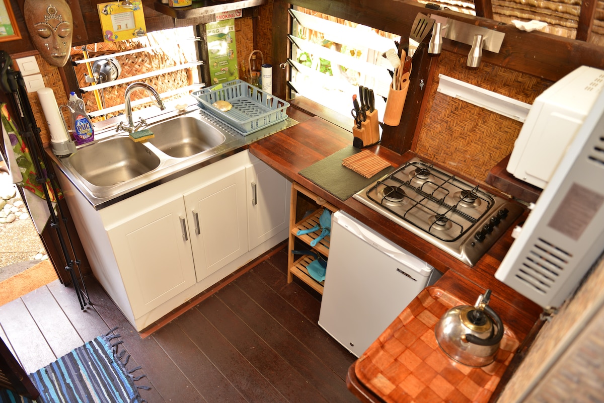 Bungalow de madeira polinésio, acesso à praia – Moorea