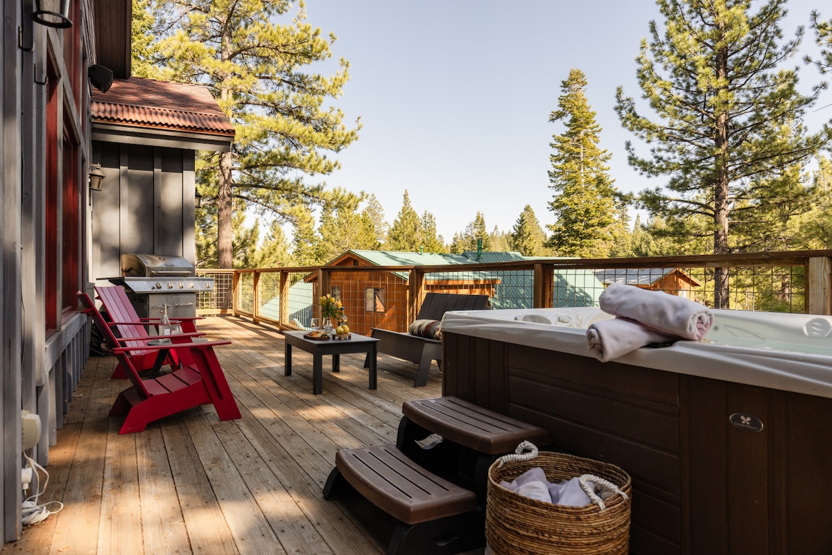 Entre os 10% de alojamentos mais apreciados e com o emblema Favorito dos hóspedes da Airbnb. Bem-vindos à LuxCabin – uma cabana de luxo novinha em folha com banheira de hidromassagem, situada no coração de Tahoe Donner Summit! Não procure mais se estiver à procura do refúgio de montanha perfeito para descontrair e desfrutar da natureza. ☞ Banheira de hidromassagem ☞ Cabana pitoresca, acolhedora e elegante ☞ 2 minutos a pé até um mercado totalmente abastecido ☞ Adequado para bebés e animais de estimação ☞ Mais fotos: IG @luxcabin.tahoe