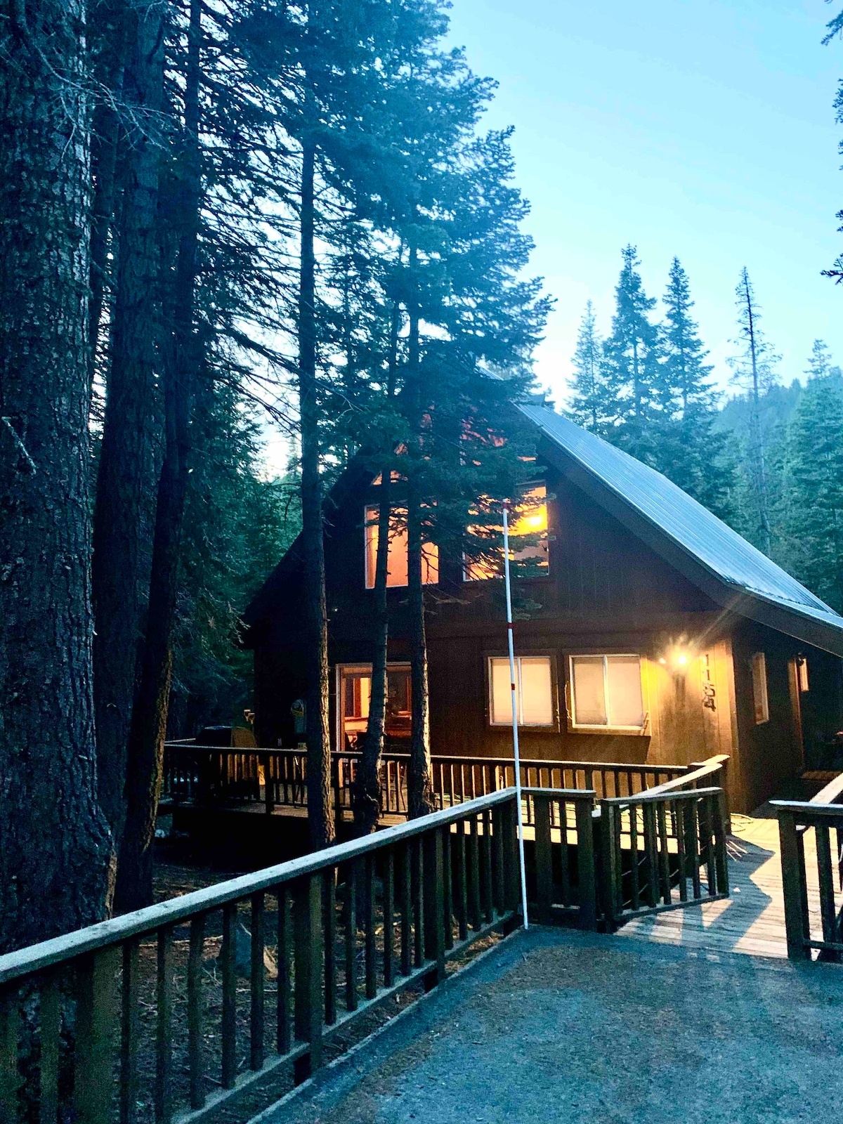 Grande cabana espaçosa - 2200 pés - cercada pela Floresta Nacional. O layout é ótimo e o teto de madeira abobadado faz com que se sinta numa casa na árvore. Há uma sala grande para ioga (tapetes fornecidos), uma bicicleta Peloton e uma poltrona de massagem. Trilhos para CAMINHADAS E BICICLETA (também para raquetes de neve e esqui de fundo) e uma FANTÁSTICA COLINA PARA TRENÓS ficam mesmo à porta da minha casa. No entanto, está a apenas 2 milhas da praia; a 6 milhas da Estância de Esqui Northstar. A velocidade da Internet é de 343 Mbps de upload/download por teste.