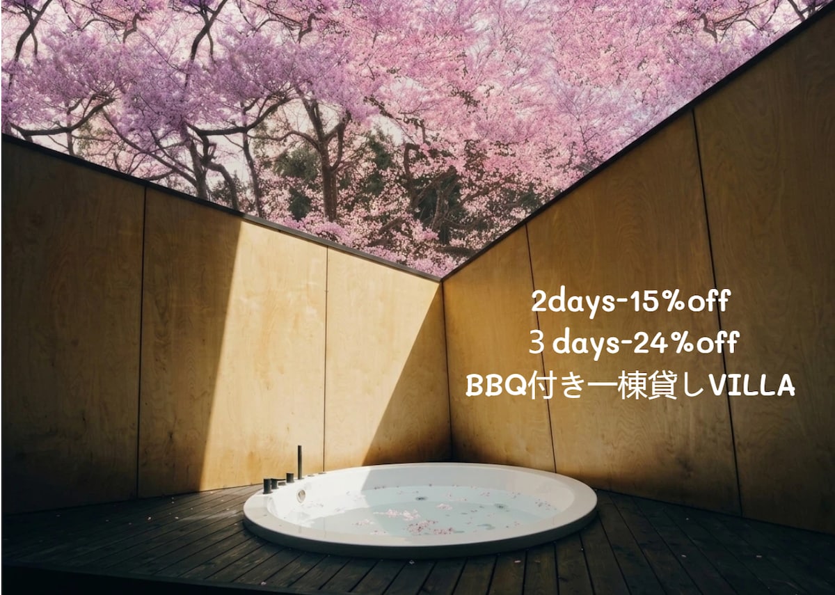 Casa de Veraneio para Adultos, Construída em Julho de 2024, com Sauna, Churrasqueira, Fogueira, Banheira de Pedra e Banheira ao Ar Livre (Jacuzzi) 123,58㎡ [C]
