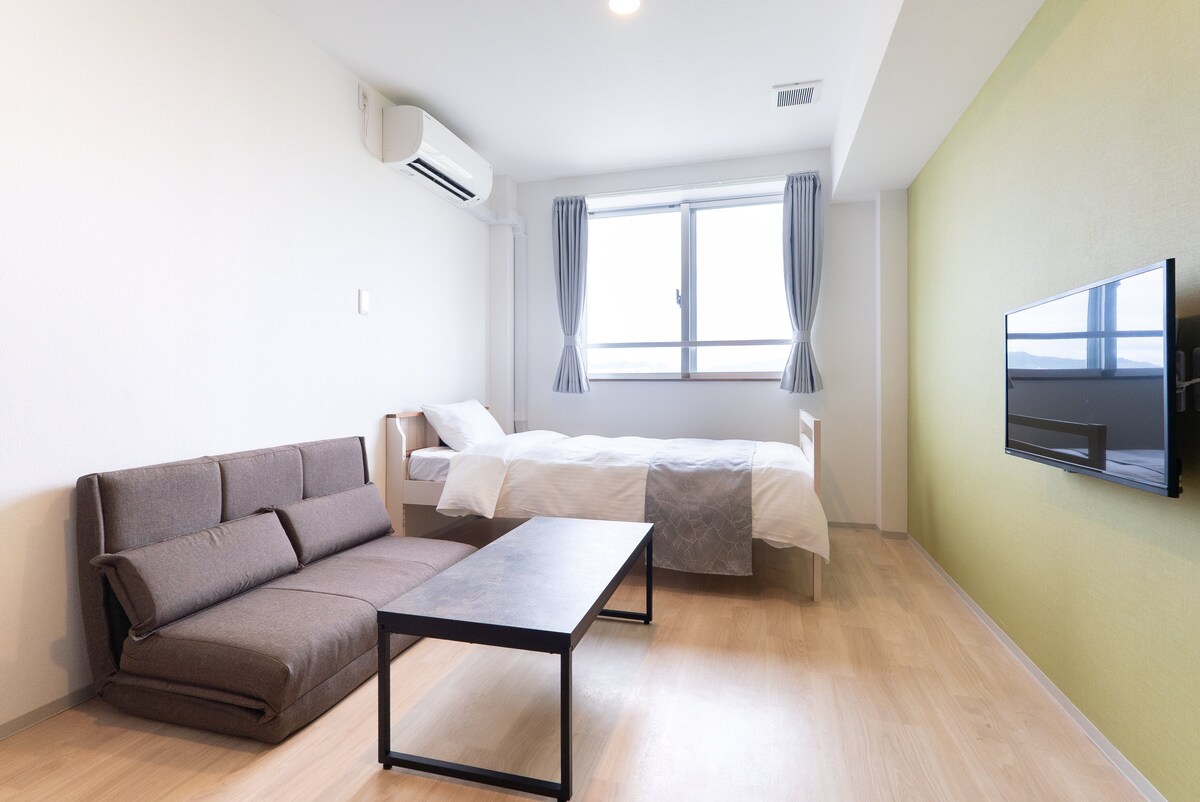 Este é um quarto no 2.º andar de um edifício de apartamentos em frente ao porto. É um quarto de esquina virado a sul com vista para o porto a partir do quarto. O quarto tem uma máquina de lavar roupa e secadora totalmente automática do tipo tambor, uma casa de banho com bidé, uma cozinha com um fogão a gás de 2 bocas com grelha e uma casa de banho com chuveiro, e é adequado para estadias de longa duração. Compatível com Chromecast e Wi-Fi disponível.Pode usar vários serviços de streaming de vídeo com a sua própria conta. O edifício tem um fecho automático, para que se possa sentir à vontade quando sair. Tem tudo o que necessita e é um ambiente sem stress durante a sua estadia. Cerca de 10 minutos a pé da zona do centro da cidade.É relativamente fácil deslocar-se sem um carro alugado e temos 1 bicicleta gratuita disponível. Se vier de carro, mostraremos um espaço livre nas proximidades, a 3 minutos a pé. ※ Também podemos encaminhá-lo para um estacionamento pago localizado a cerca de 10 segundos a pé do apartamento.Por favor, pergunte com antecedência, pois podemos não ser capazes de fornecer informações devido à disponibilidade. Recomendamos 1 pessoa para alojamento, mas podemos alojar até 2 pessoas por uma taxa adicional. Se o estiver a usar para 2 pessoas, prepararemos 1 conjunto de futons, por isso não se esqueça de nos informar no momento da reserva.