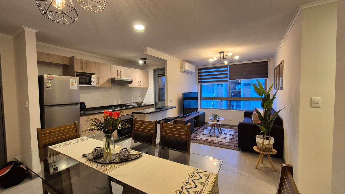 Moderno departamento con Aire Acondicionado en el Centro de Talca. 📍 ¡Bienvenido a tu hogar temporal en Talca! Este departamento combina comodidad y estilo, perfecto para familias, amigos o empresas. Disfruta de una cocina totalmente equipada, estacionamiento exclusivo y una ubicación privilegiada, a pasos de todo lo que necesitas. Reserva hoy y vive Talca desde el corazón de la ciudad. ¡No te lo pierdas! ✨
