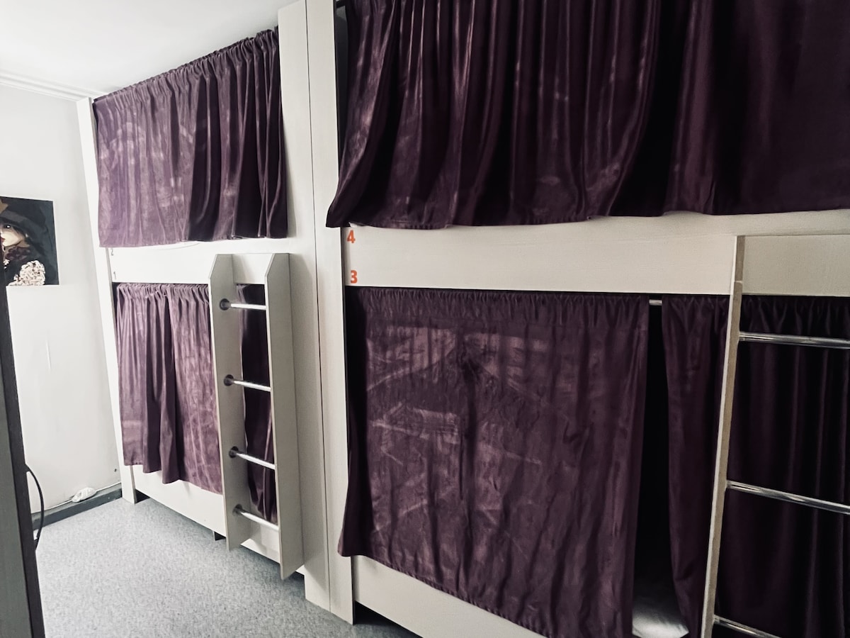 Novo albergue espaçoso para a estadia confortável dos hóspedes de Almaty. Sleep&Work. O hostel tem 5 quartos isolados para 8 pessoas. Três casas de banho, dois quartos com casas de banho. Fornecemos homens e mulheres. Há uma área de coworking comum com acesso gratuito à Internet.