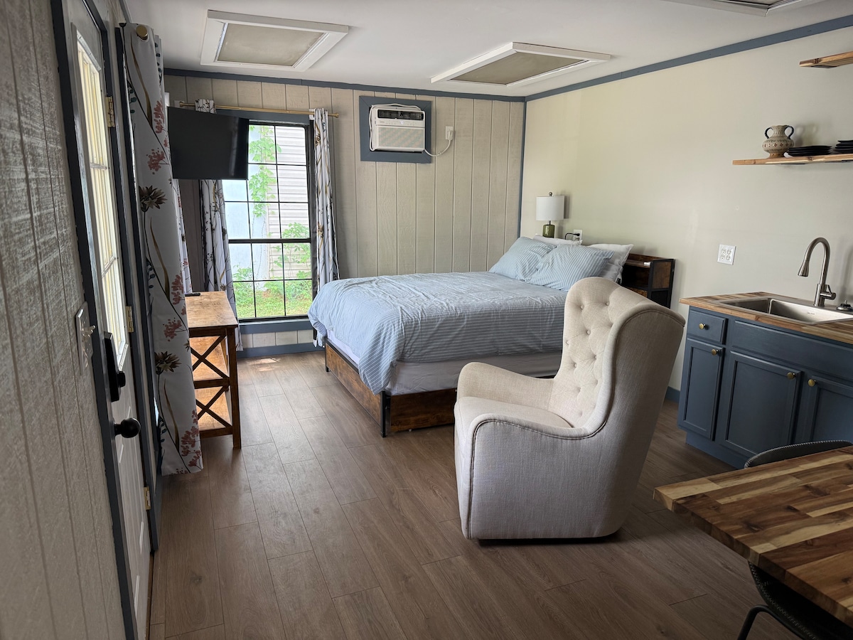 Close Quarters, um apartamento estúdio exclusivo localizado dentro do The Reserve at the Old Bank na praça em Ashland, AL. Este edifício histórico originalmente construído em 1907 foi ocupado pela primeira vez como o First National Bank em 1909. Em 2024, foi renovado para oferecer uma experiência única aos nossos hóspedes. Localizado no 2º andar com vista deslumbrante para o histórico tribunal. Sala de estar Cozinha-fogão/micro-ondas/geladeira Quarto King Banheiro com conjunto de banheira/chuveiro Espaço de escritório exclusivo Wi-Fi Smart TV